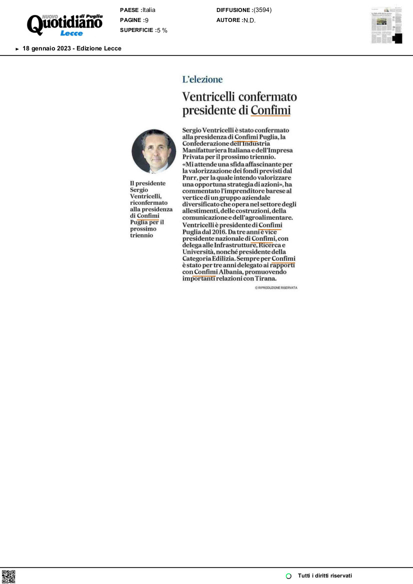 Ventricelli confermato presidente di Confimi